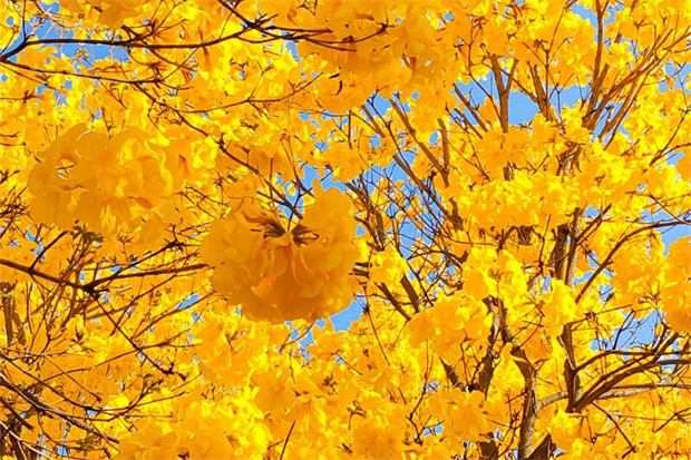 伴着春风,红河州的黄花风铃木也迎来了盛花期,开远羊街乡黑泥地80余亩花海如鎏金倾泻、金浪涌动;蒙自观澜路、